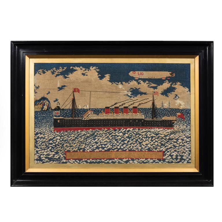 Woolwork Picture of the Liner RMS Lusitania c.1925