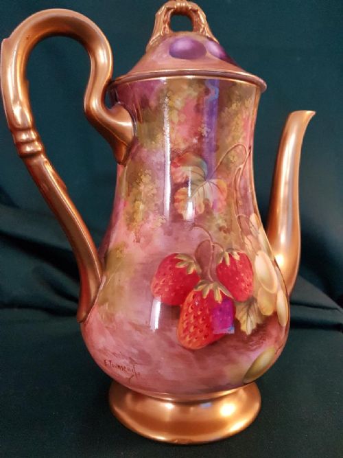 Worcester Fruits Coffee Pot. Decorated with Apples Grapes & Strawberries. Artist E Townsend