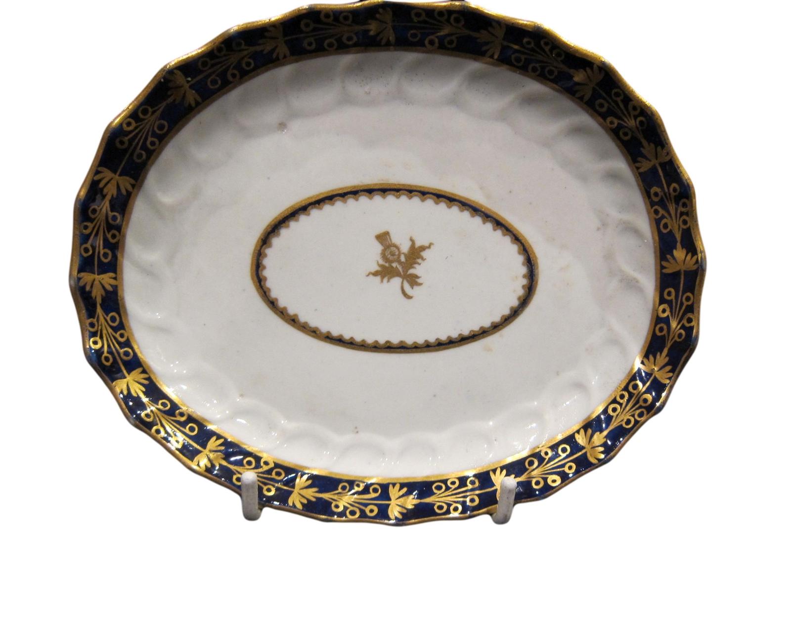 Worcester Porcelain Fluted Teapot Stand With Dark Blue & Gilt Decoration