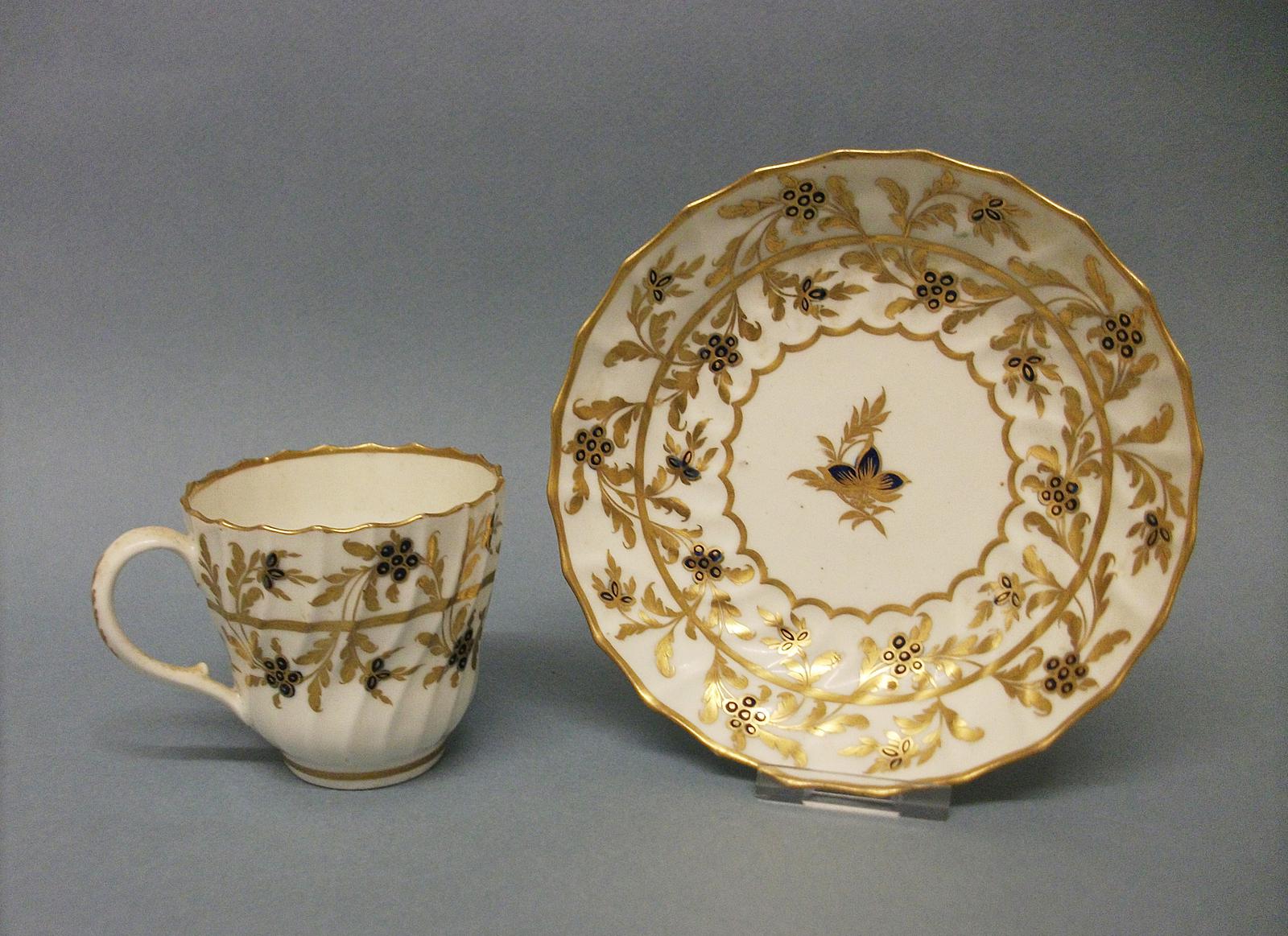 Worcester Spiral Fluted Coffee Cup and Saucer, c.1785