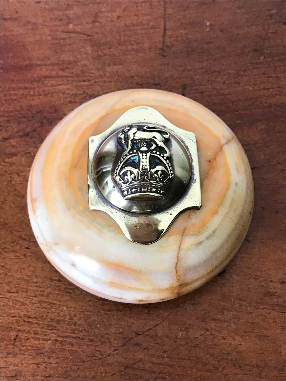 World War 1 Era Marble & Brass Royal First Devon Yeomanry Paperweight
