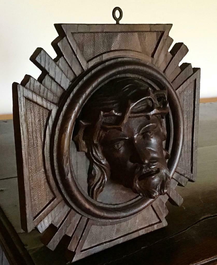 World War 2 Religious Plaque Hand Carved Face of Jesus 3D Carving Dated 1941