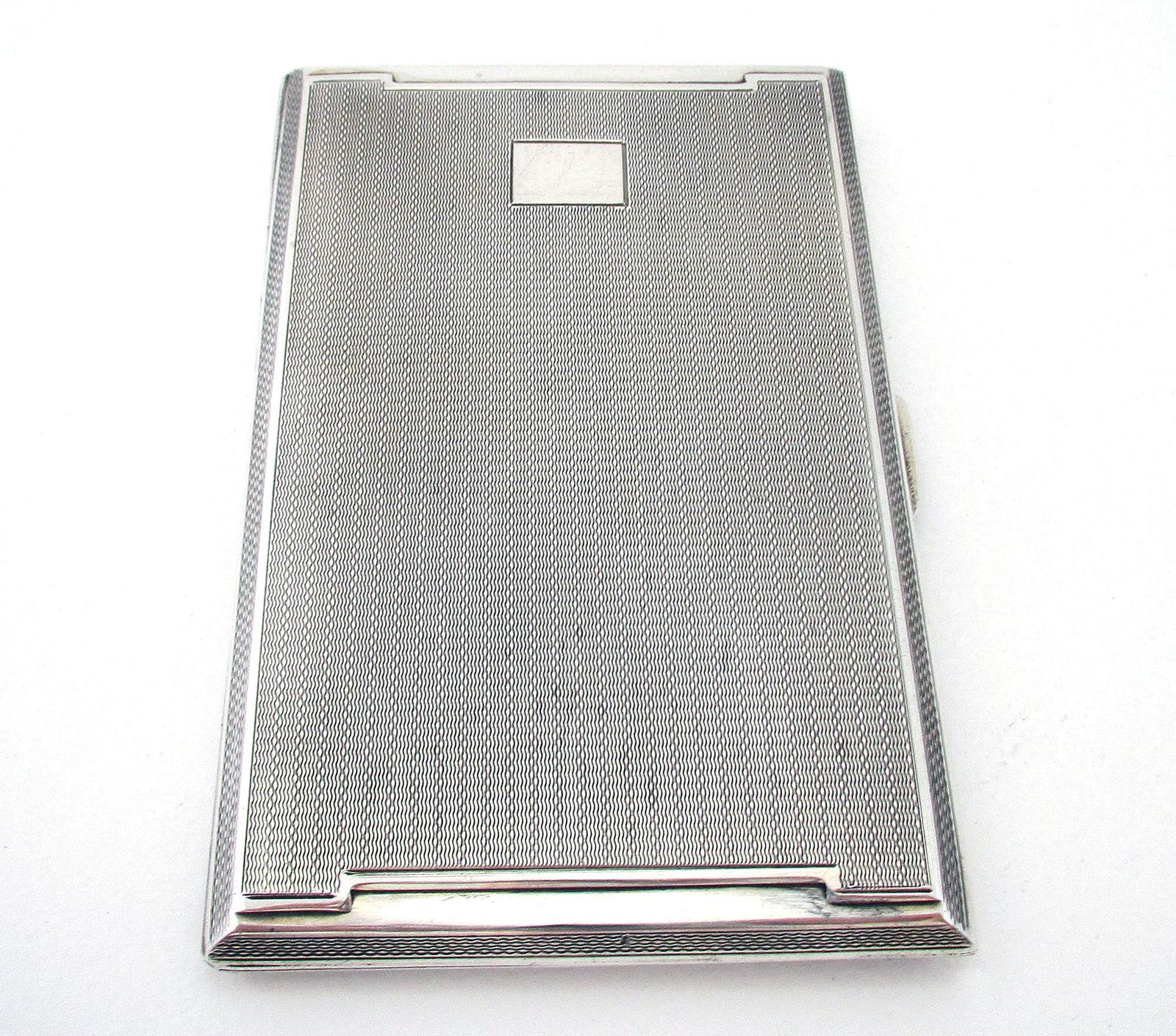 World War II Solid Sterling Silver Cigarette Card Case Box English Art Deco