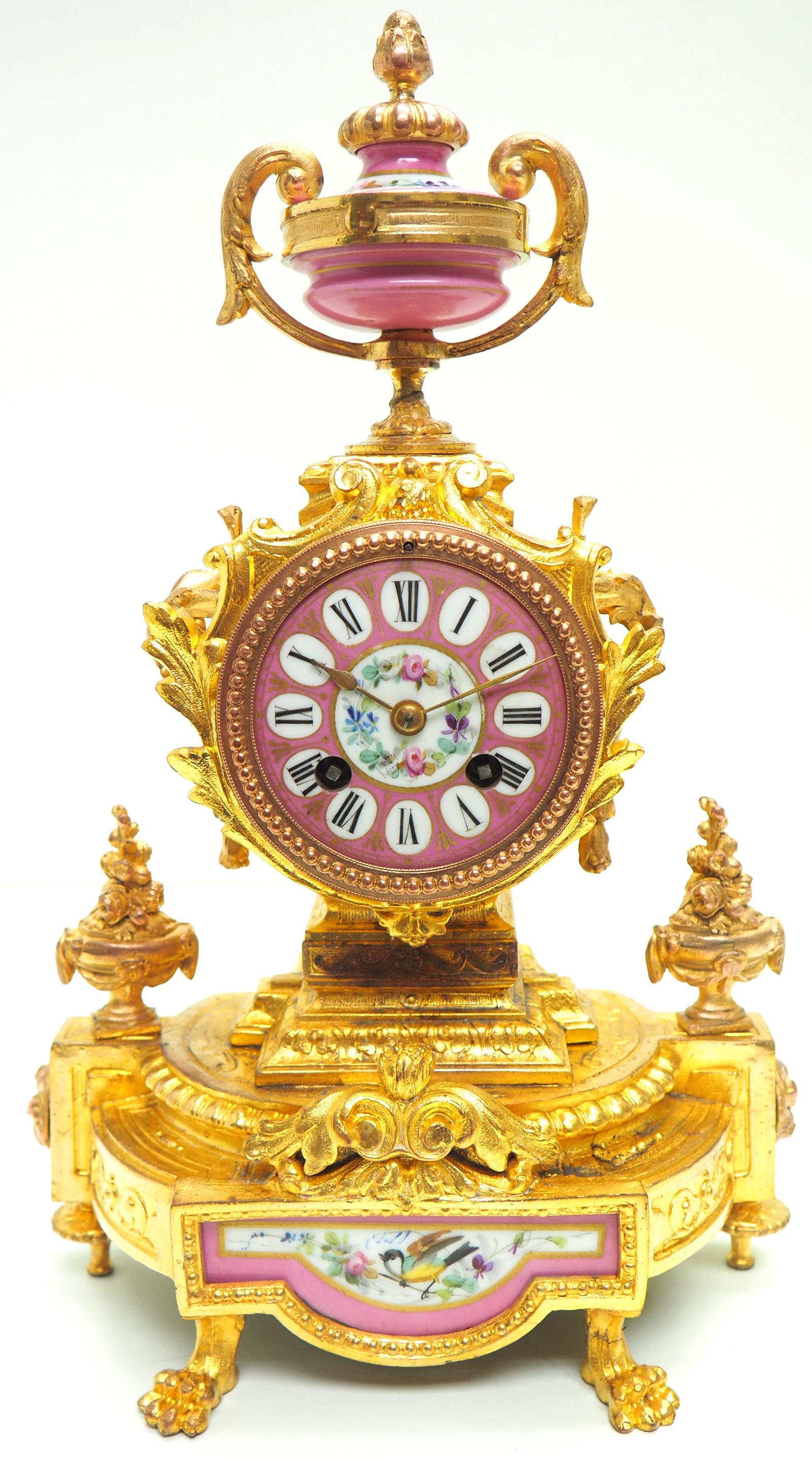 Wow! Antique French Pink Sevres Mantel Clock 8 Day Striking Mantle Clock