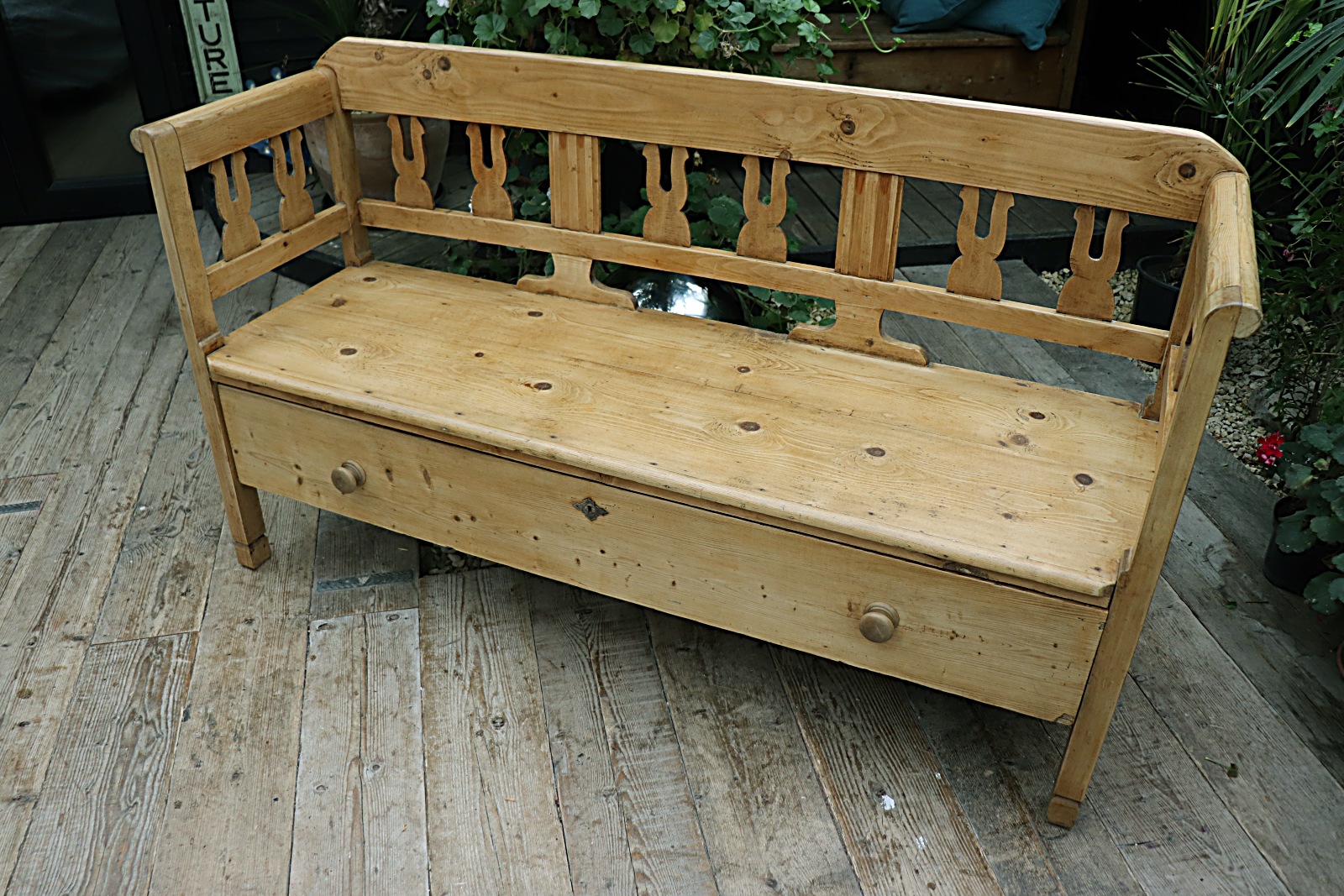 Wow! Gorgeous & Genuine Old Antique Pine Storage Bench / Settle - We Deliver