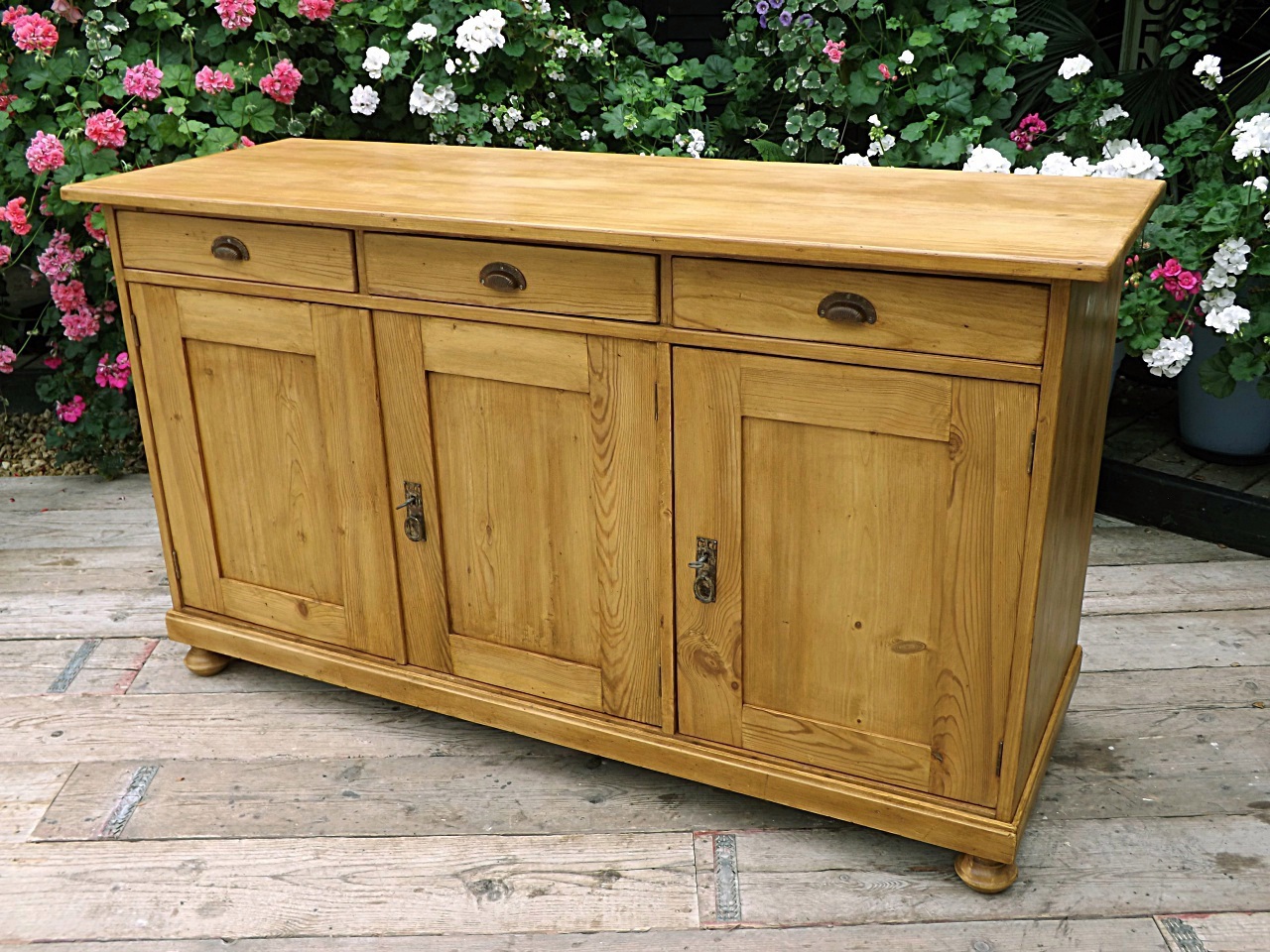 Wow! Large Old Antique Pine Sideboard / Cupboard / Cabinet / Dresser Base, We Deliver!