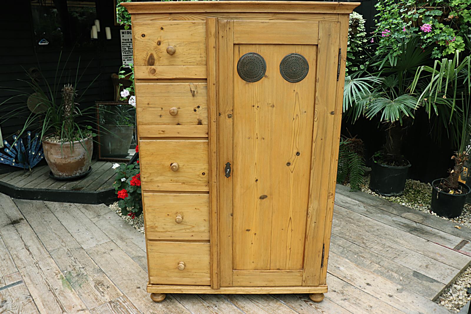 Wow! Large Old Pine Food Cupboard / Linen / Kitchen / Larder / Wardrobe - We Deliver!