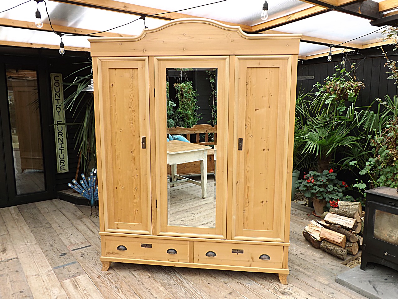 Wow! Old Antique Stripped Pine Triple Sectional Wardrobe. We Deliver / Assemble!