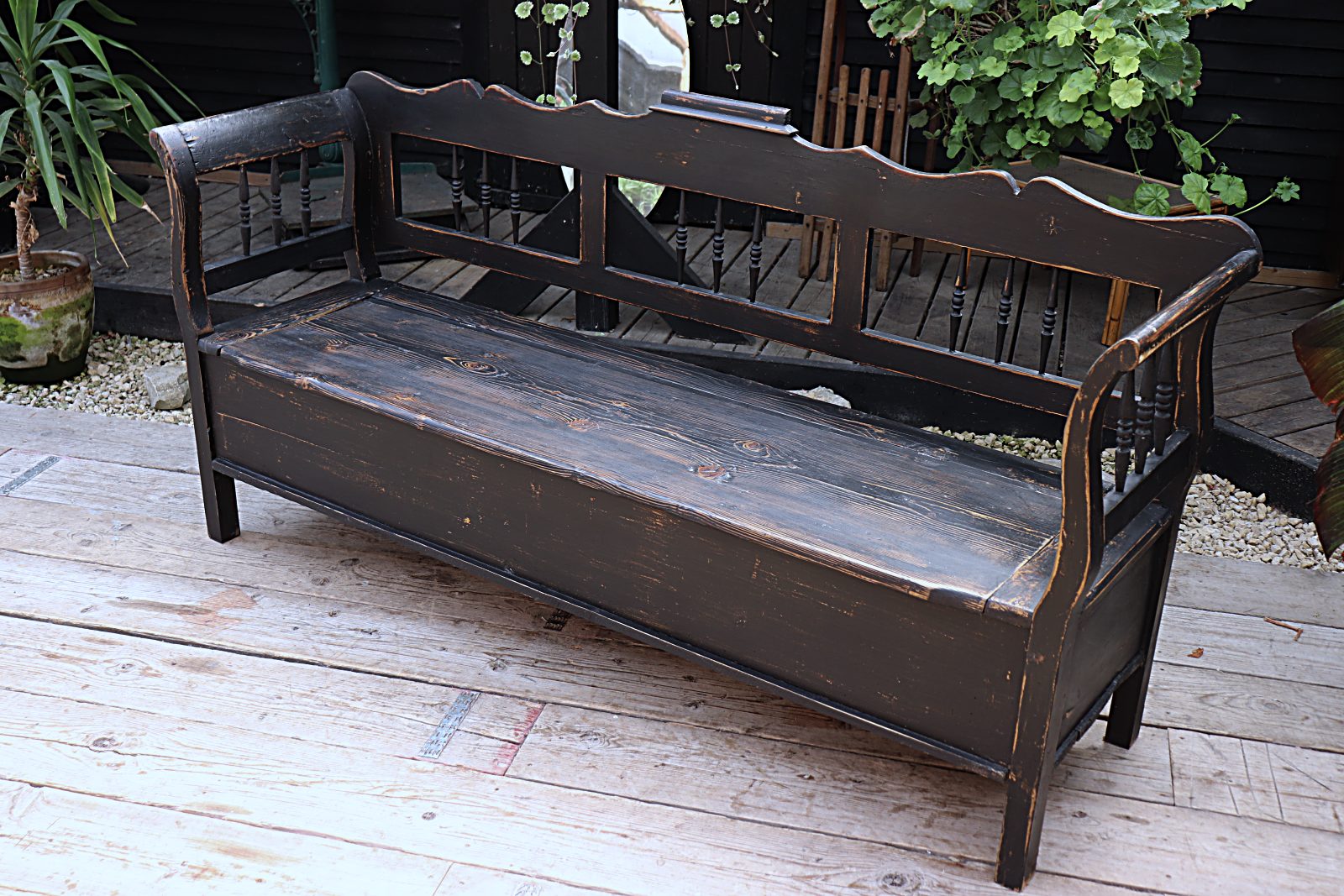 Wow! Old Pine & Black Painted Hungarian Box / Storage Bench / Settle - We Deliver!
