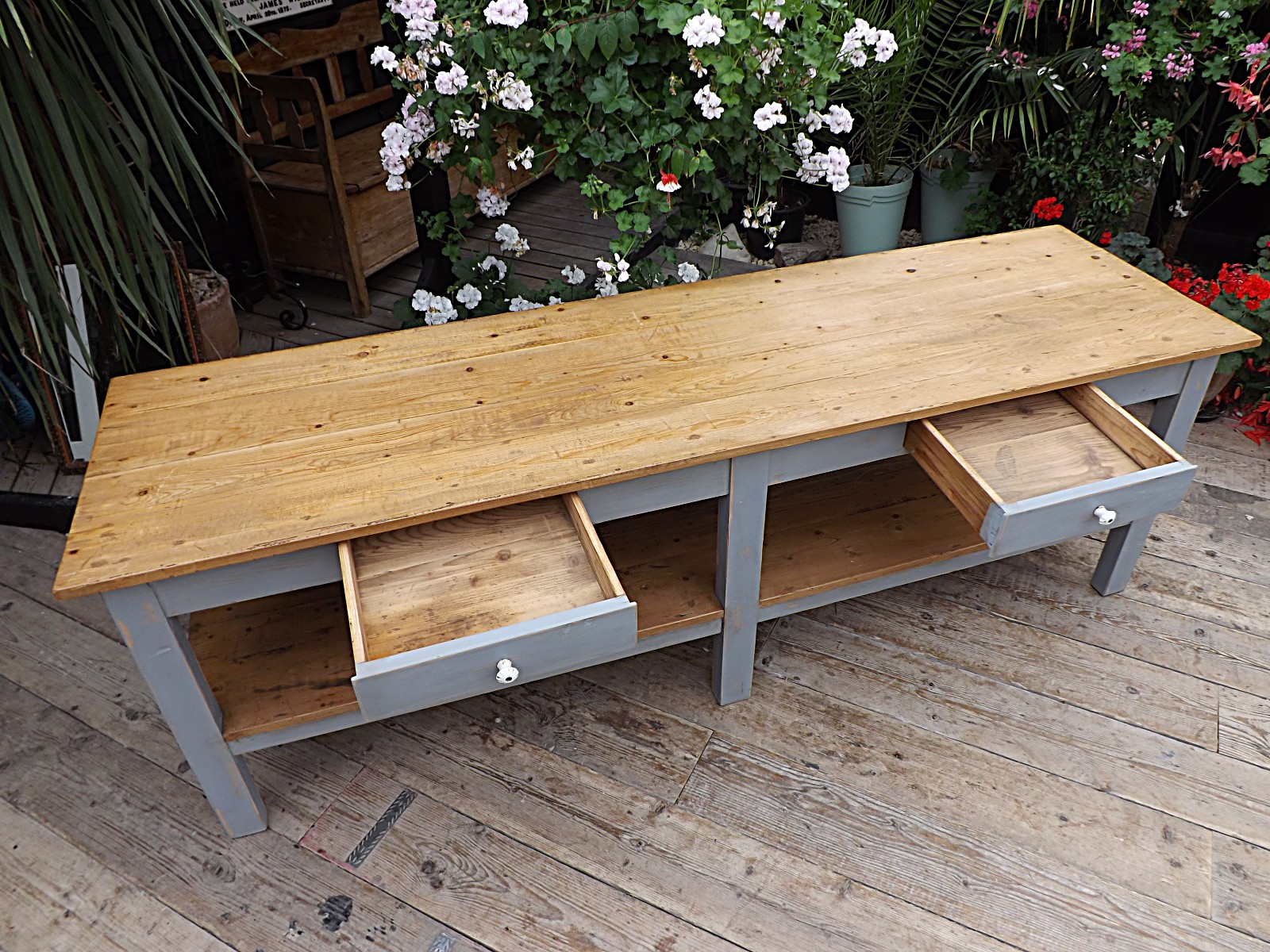 Wow! Old Pine / Grey Blue Painted 2.4M Kitchen Island / Dining Table - We Deliver!