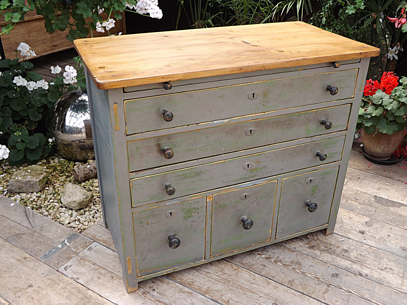 Wow!! Old Pine Grey / Green Painted Chest of Drawers / Cupboard / Sideboard - We Deliver