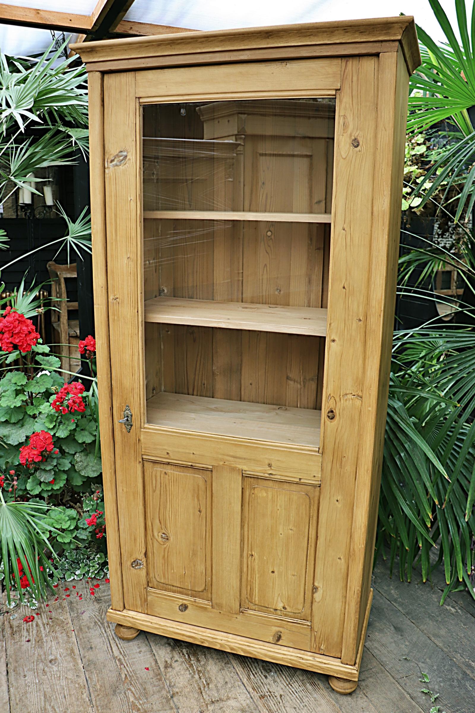 Wow! Tall/ Slim Old Antique Pine Glazed Display Cupboard / Cabinet / Linen / Larder