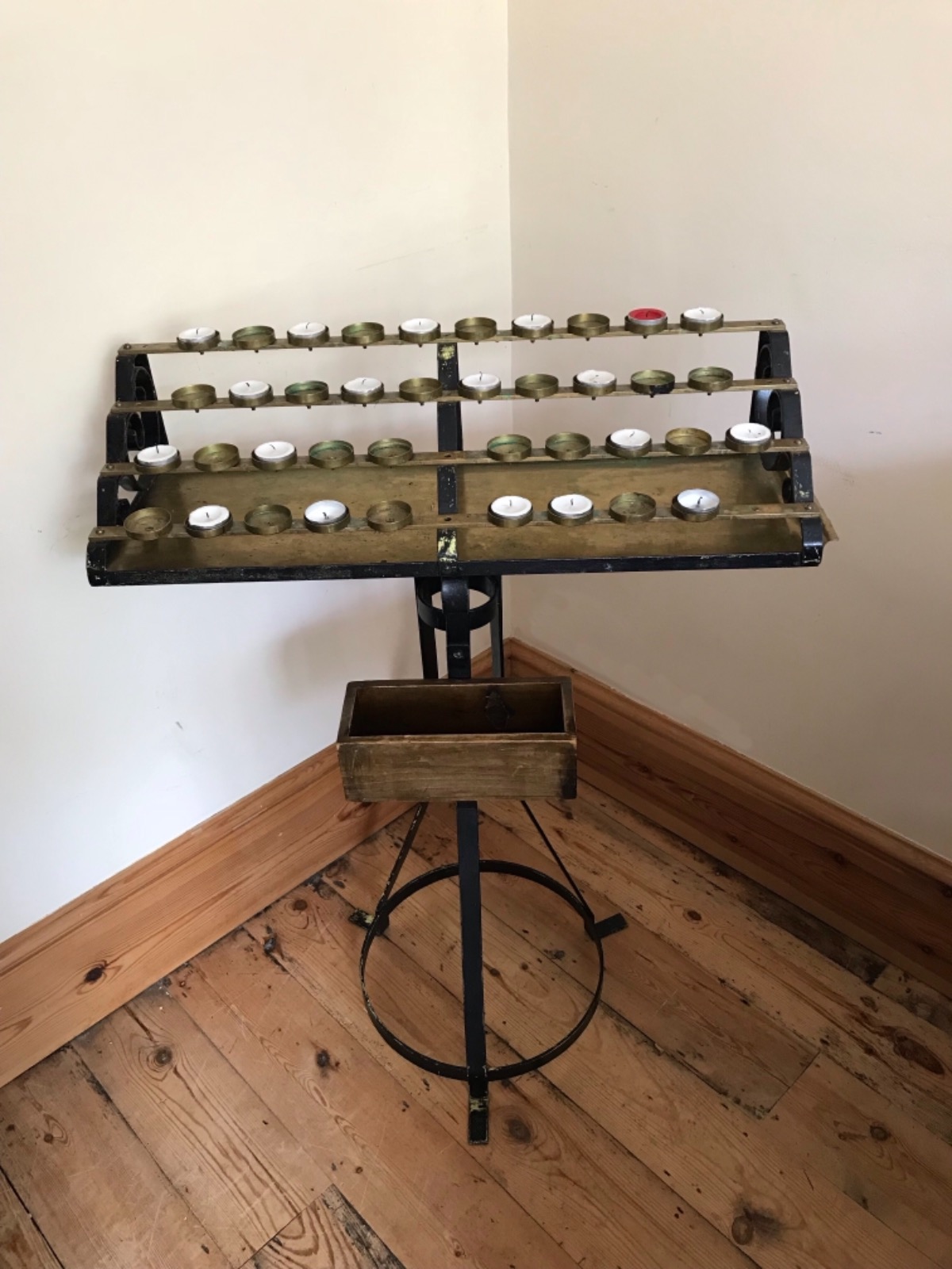 Wrought Iron & Brass Church Votive Stand with Donation Box