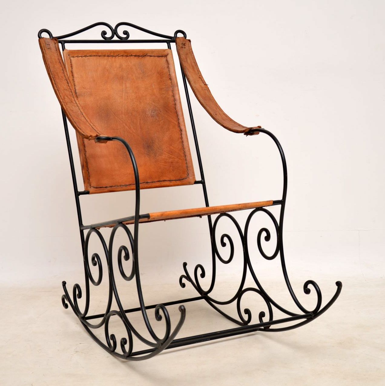 Wrought Iron & Leather Rocking Chair (1 of 7)