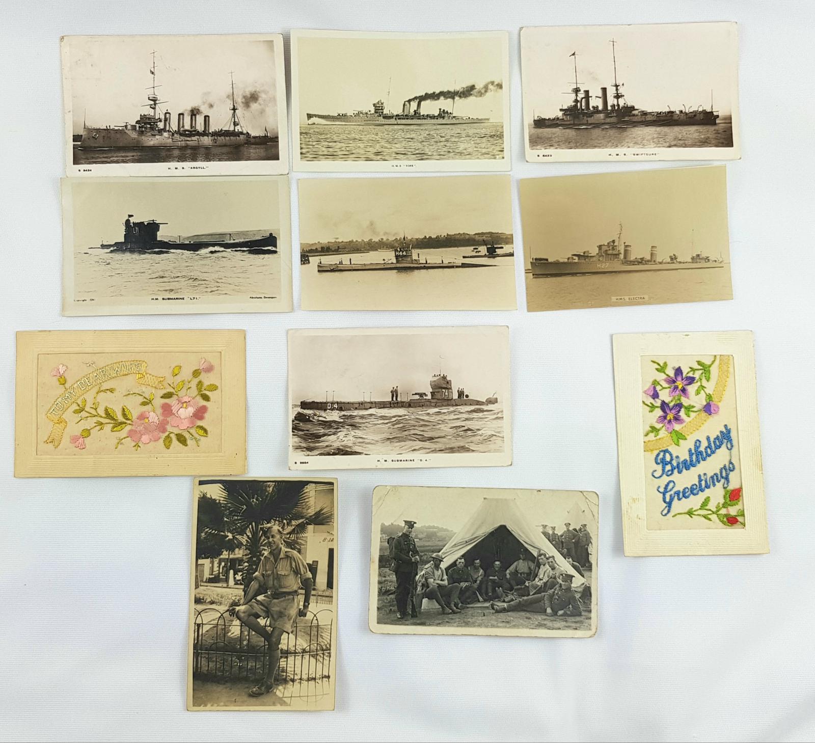 WW1 and WW2 Postcards Submarines, Boats & Embroidered. Photographic