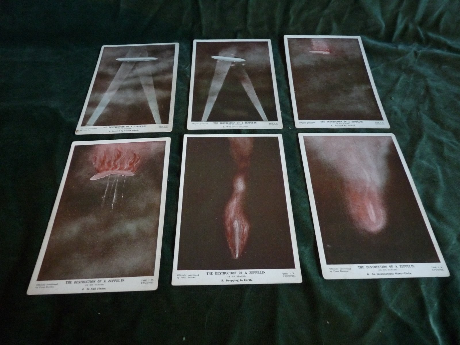 WW1 Full Set of 6 ‘Destruction of a Zeppelin’ Postcards