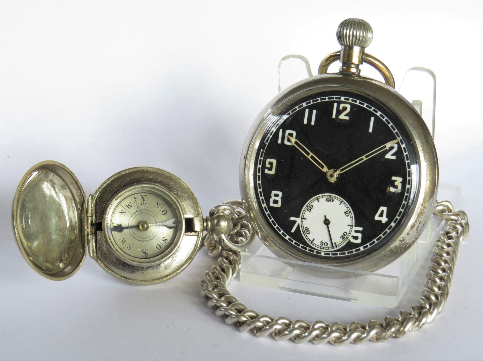 WW2 Unitas Military Pocket Watch, Chain & Compass