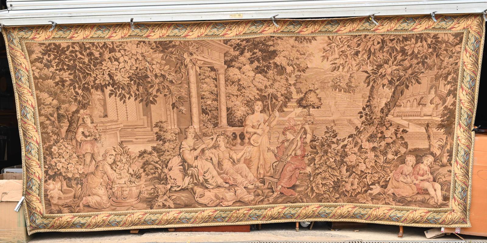 XL Flemish Tapestry Wall Hanging of Musical Instrument Idyll