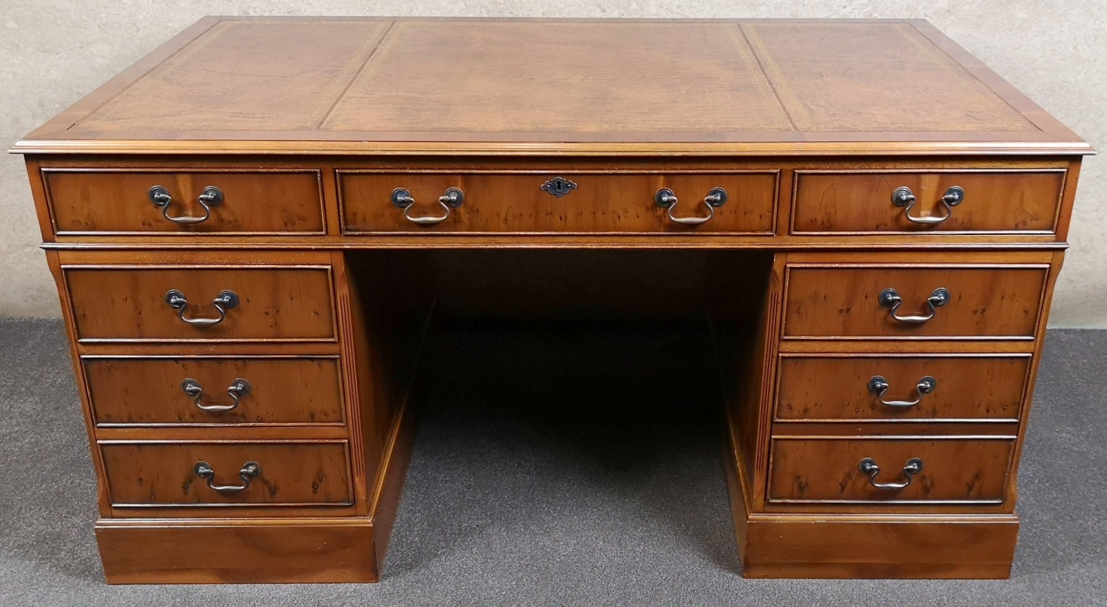 Yew Pedestal Desk in the Georgian Style (1 of 1)