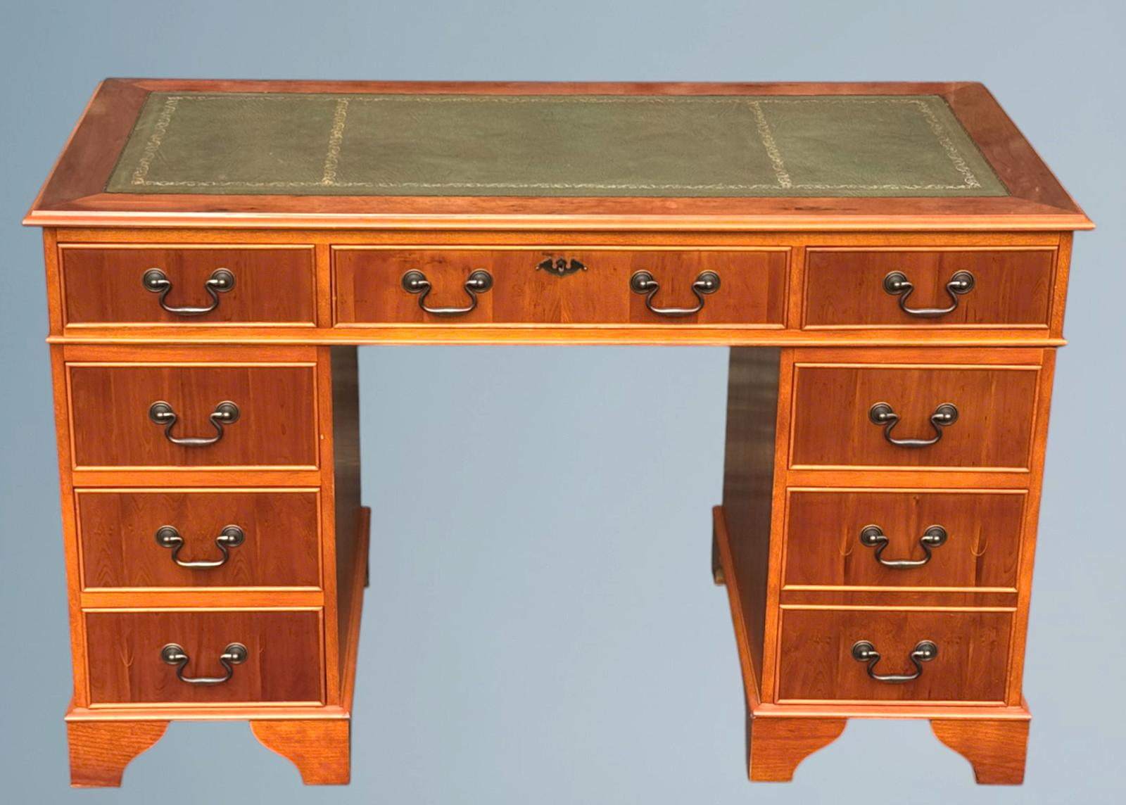 Yew Pedestal Kneehole Writing Desk (1 of 12)