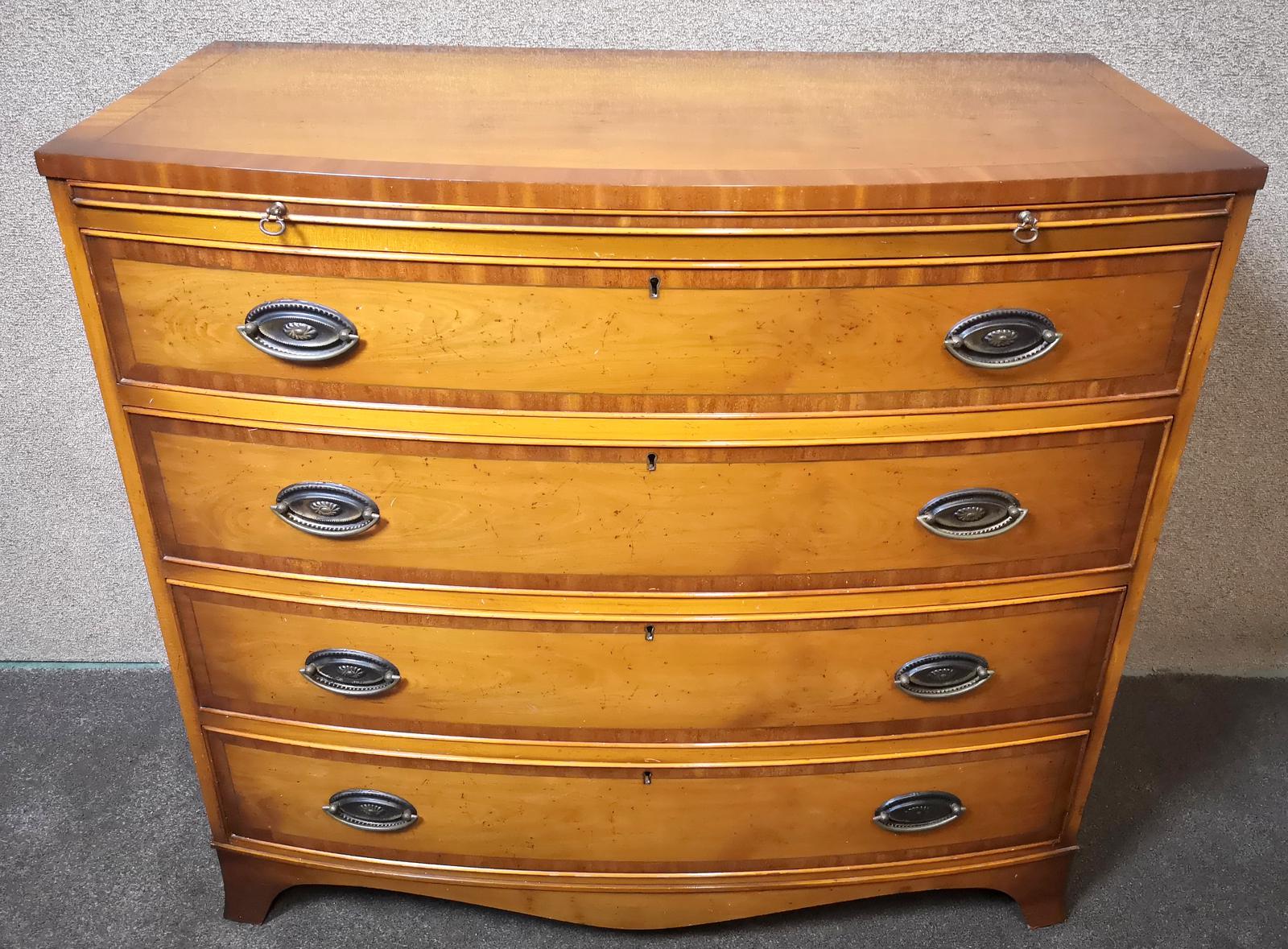 Yew Wood Bow Front Chest of Drawers / Reprodux Bevan Funnel