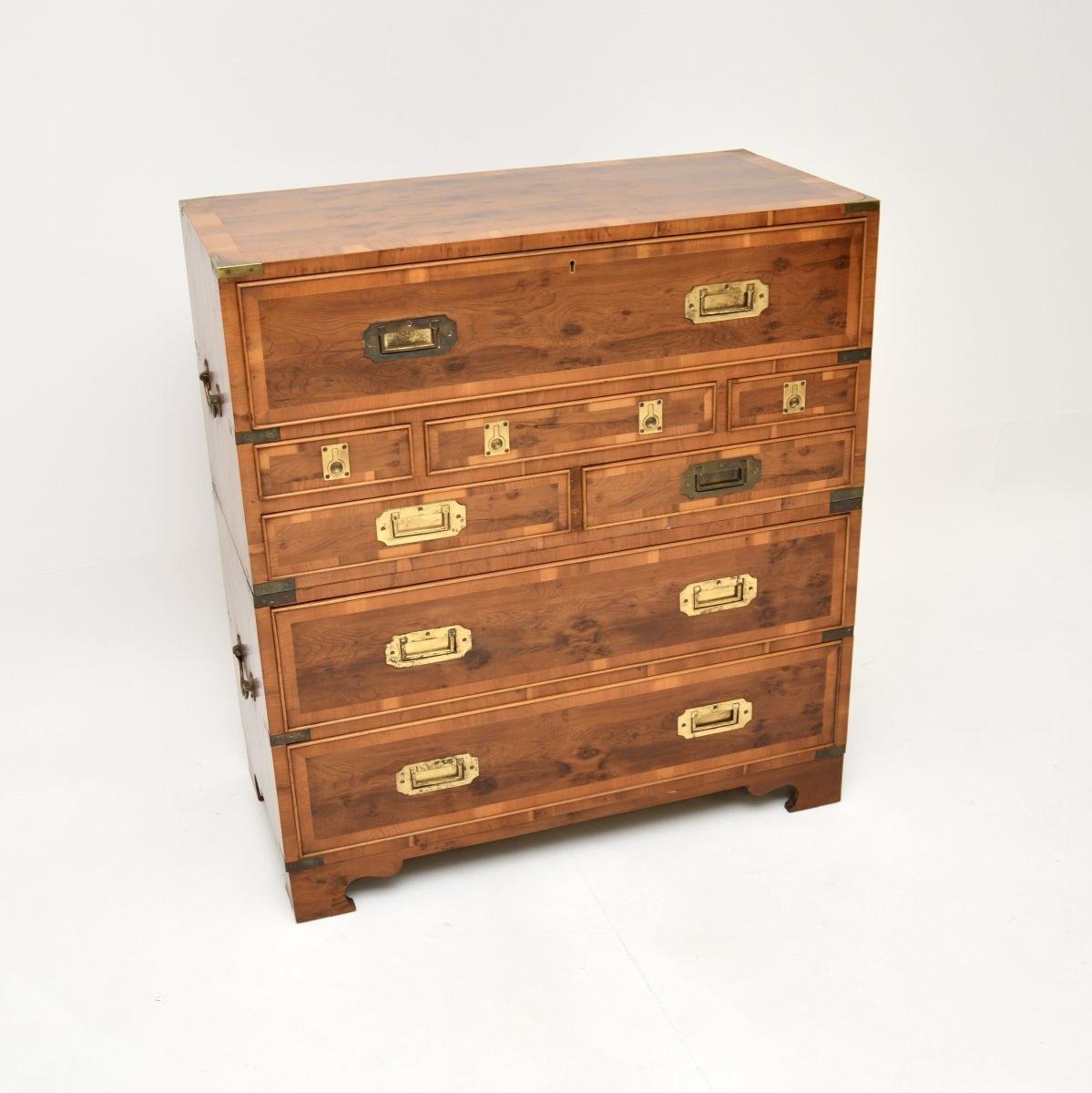 Yew Wood Military Campaign Secretaire Chest of Drawers