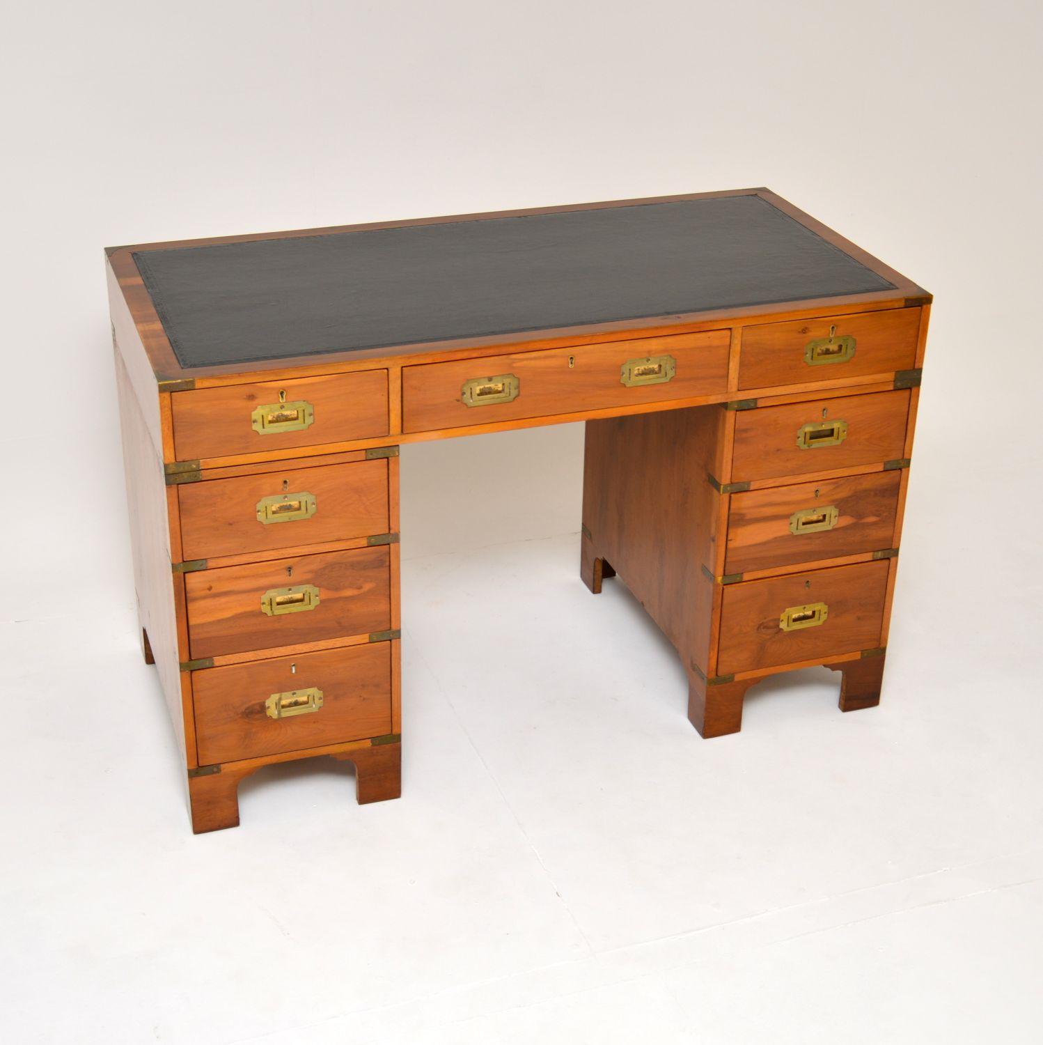 Yew Wood Military Campaign Style Pedestal Desk (1 of 10)