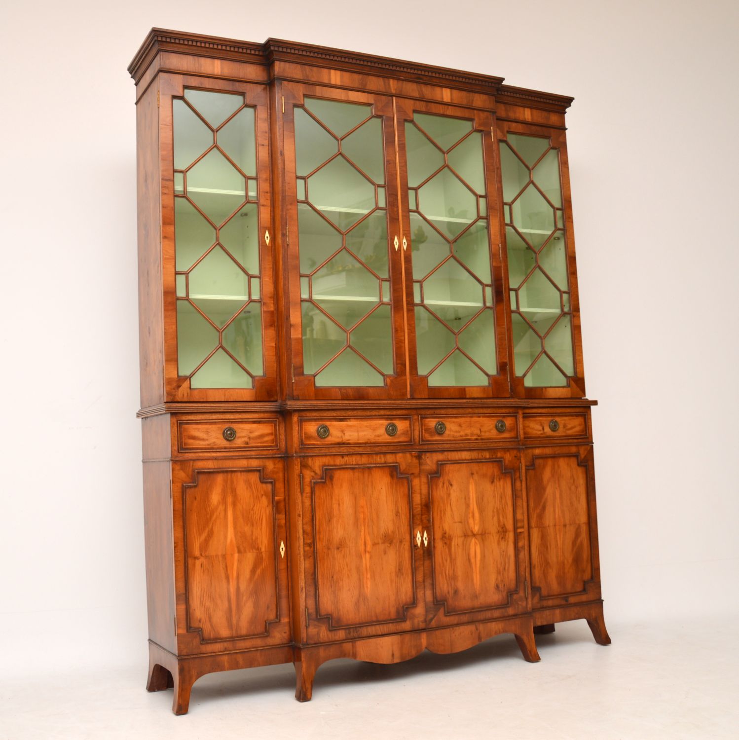 Yew Wood Regency Style Breakfront Bookcase