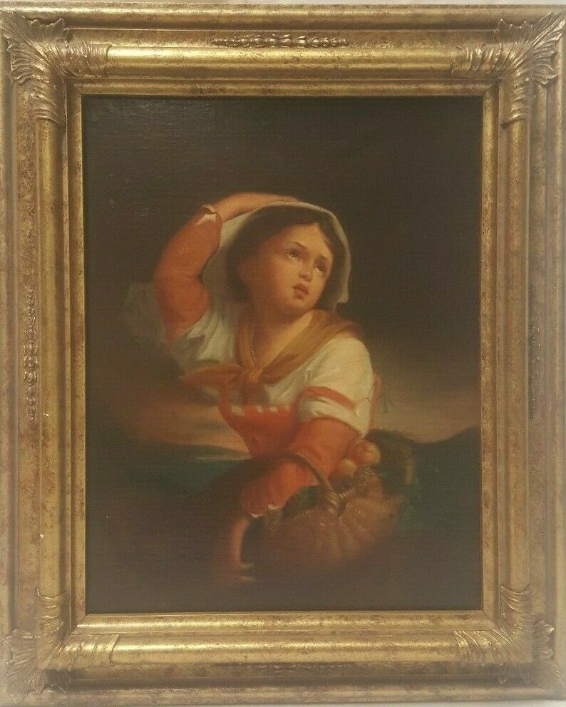 'Young Girl' a Beautiful Victorian Oil On Canvas Painting circa 1880
