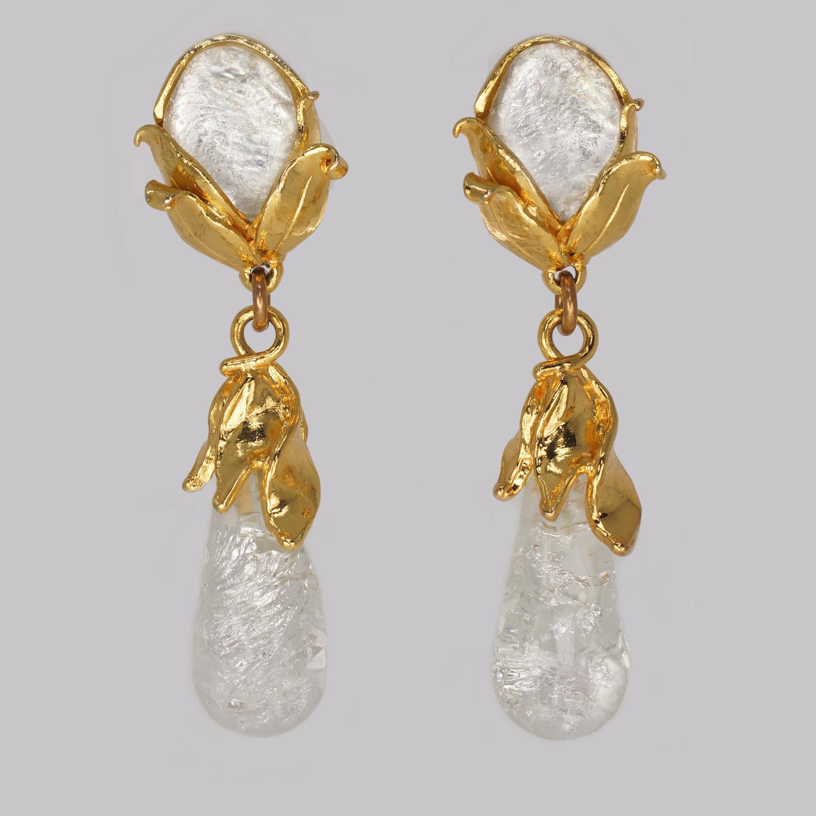 Yves Saint Laurent Earrings Rive Gauche Dangle 3" Long Vintage YSL Glass Earrings