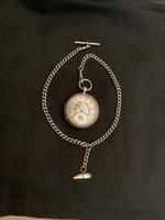 Heavy Antique Silver Pocket Watch Chain & Fob